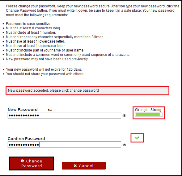 - Follow the password requirements. Enter your New Password and retype it under Confirm Password.