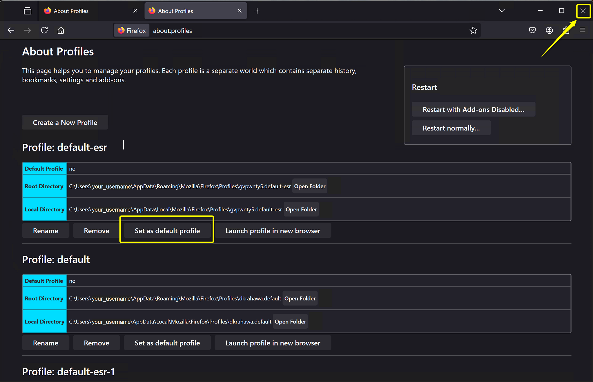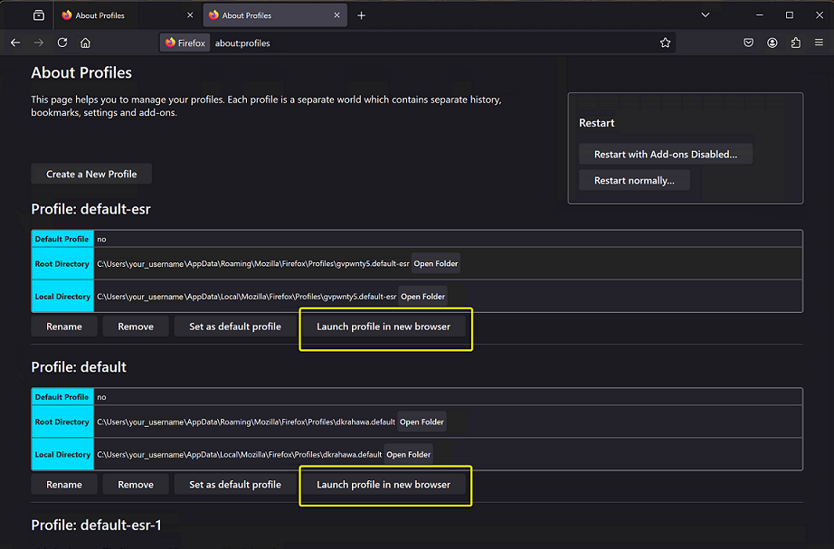 - In Firefox, type about:profiles in the URL (Address) bar, then hit the Enter key on the keyboard.