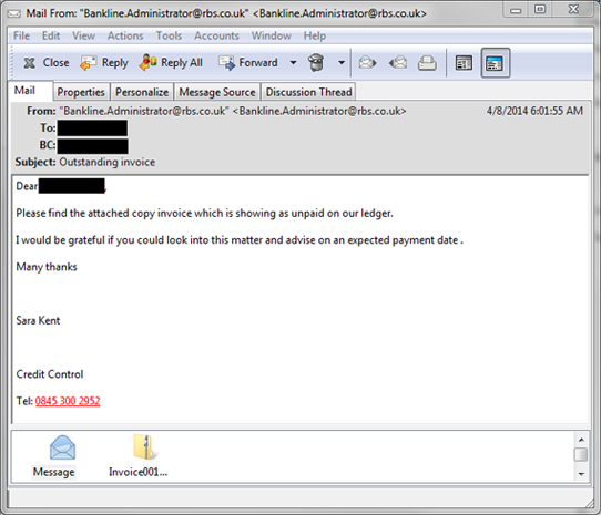 Example 3: Unsolicited or unexpected orders to pay invoices/other financial matters.