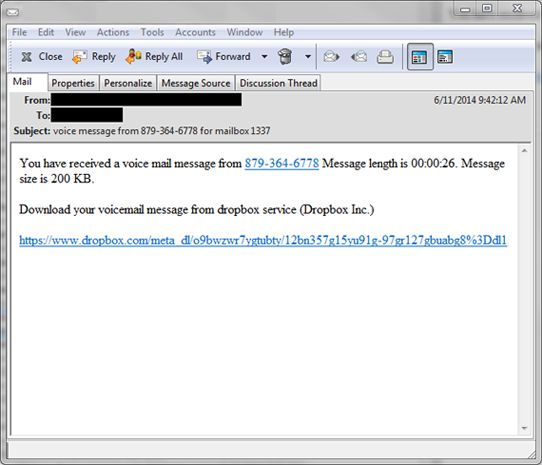 Example 2: Malicious link to file sharing services (Dropbox, SkyDrive, OneDrive, Google Drive, etc.):