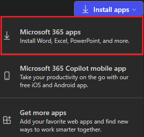 - Click Microsoft 365 apps to download and install Microsoft Office.