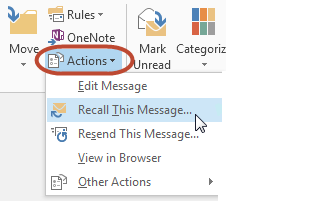 - On the Message tab, in the Move group, click Actions, and then select Recall This Message.
