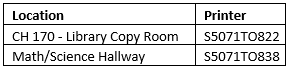 There are three Canon print devices on the Toledo campus that your print jobs can be released from when using Web Print, Mobility Print, or Email to Print. The Canon print devices are referred to as Canon Common Area Printers.